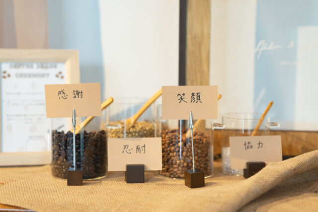②日常のスキを結婚式へ。コーヒー豆の結婚証明書