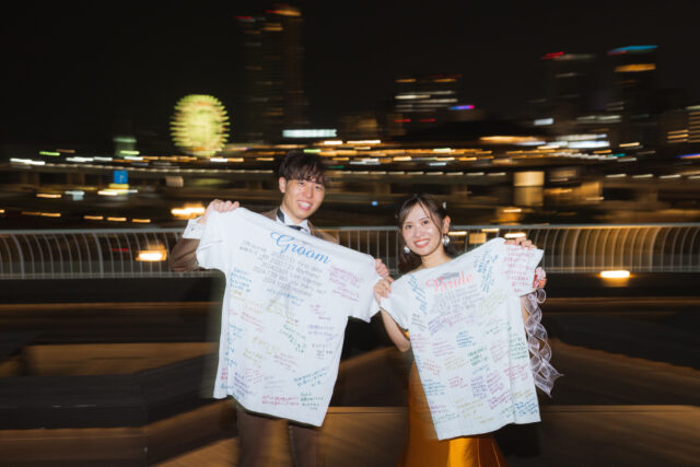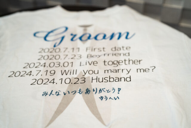おふたりがオリジナルで創った白のTシャツに、ゲスト一人一人がメッセージを書き込んで