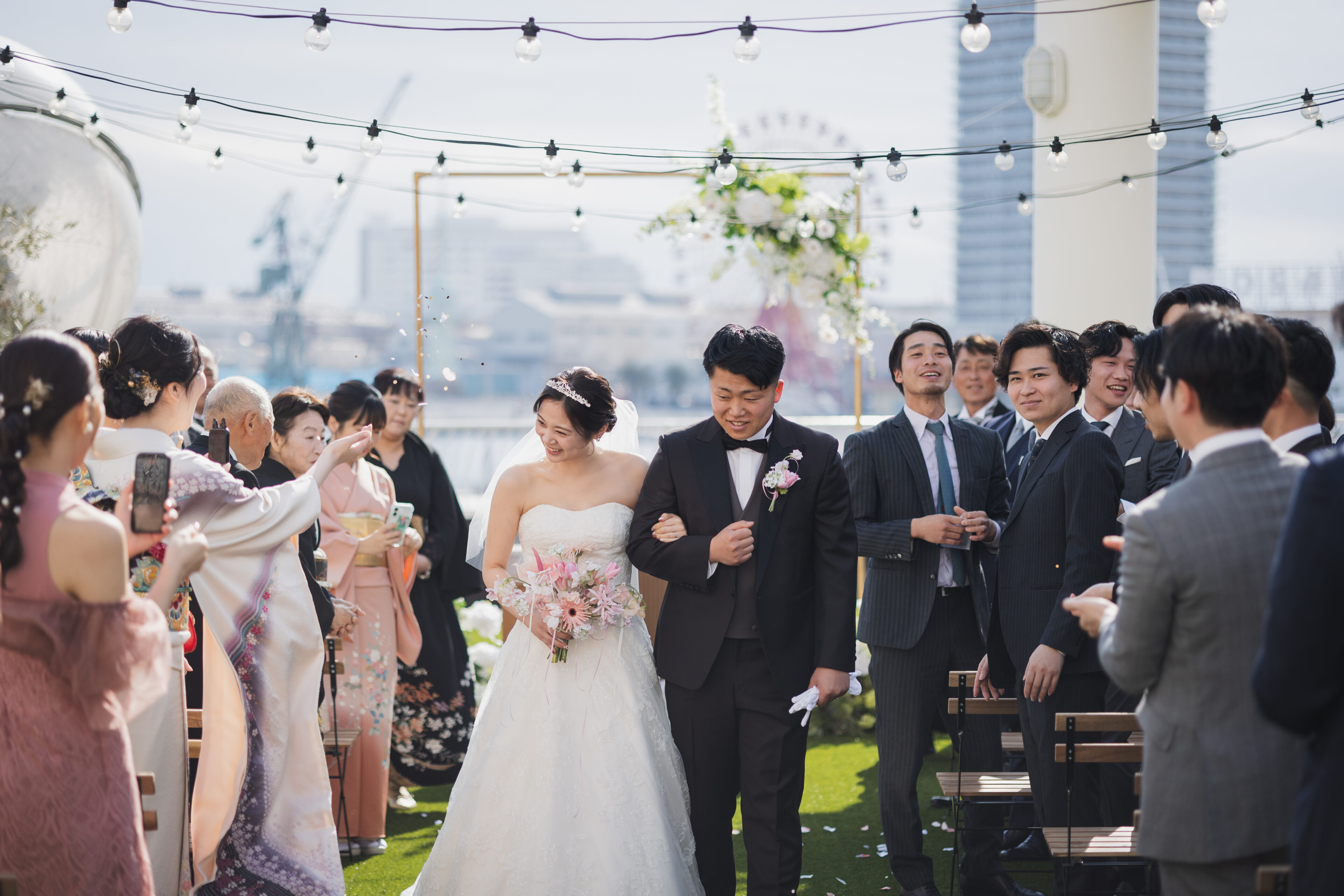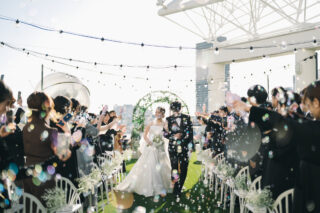 フラワーシャワーやコンフェッティ、バルーンシャワーなど、空間を活かした演出がとても映えます。