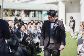 ですが、屋外挙式なので緊張感も解れておふたりが入場する前からお写真を撮っていたり、