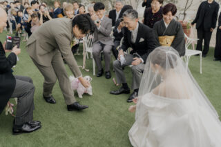 バージンロードを進むのが難しい!となった時は新郎様がお迎えに上がるスタイルで。