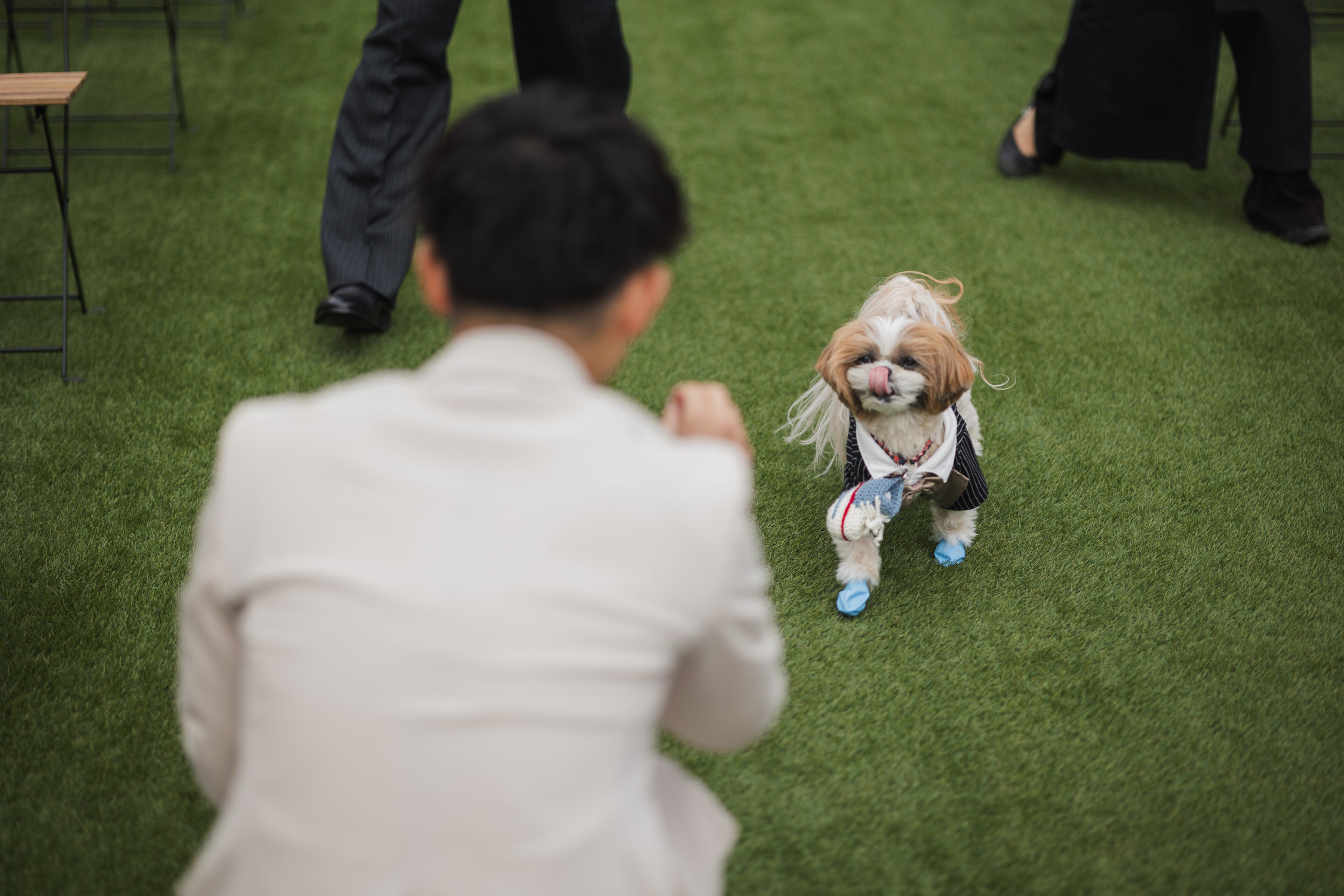 ずっとお利口だったわんちゃん。新郎様からおやつをもらって嬉しそう♡