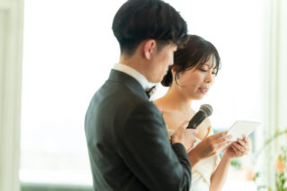 新郎新婦さまのご友人2名様ずつ前にお越しいただき、おふたりに向けた誓いをお読みいただきます。