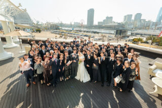 青空と海の見えるロケーションで、ゲストとの距離が近く温かな時間を過ごす挙式スタイル