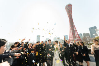 みなさまからのお祝いの中、快晴な空とコンフェッティの相性が抜群👍